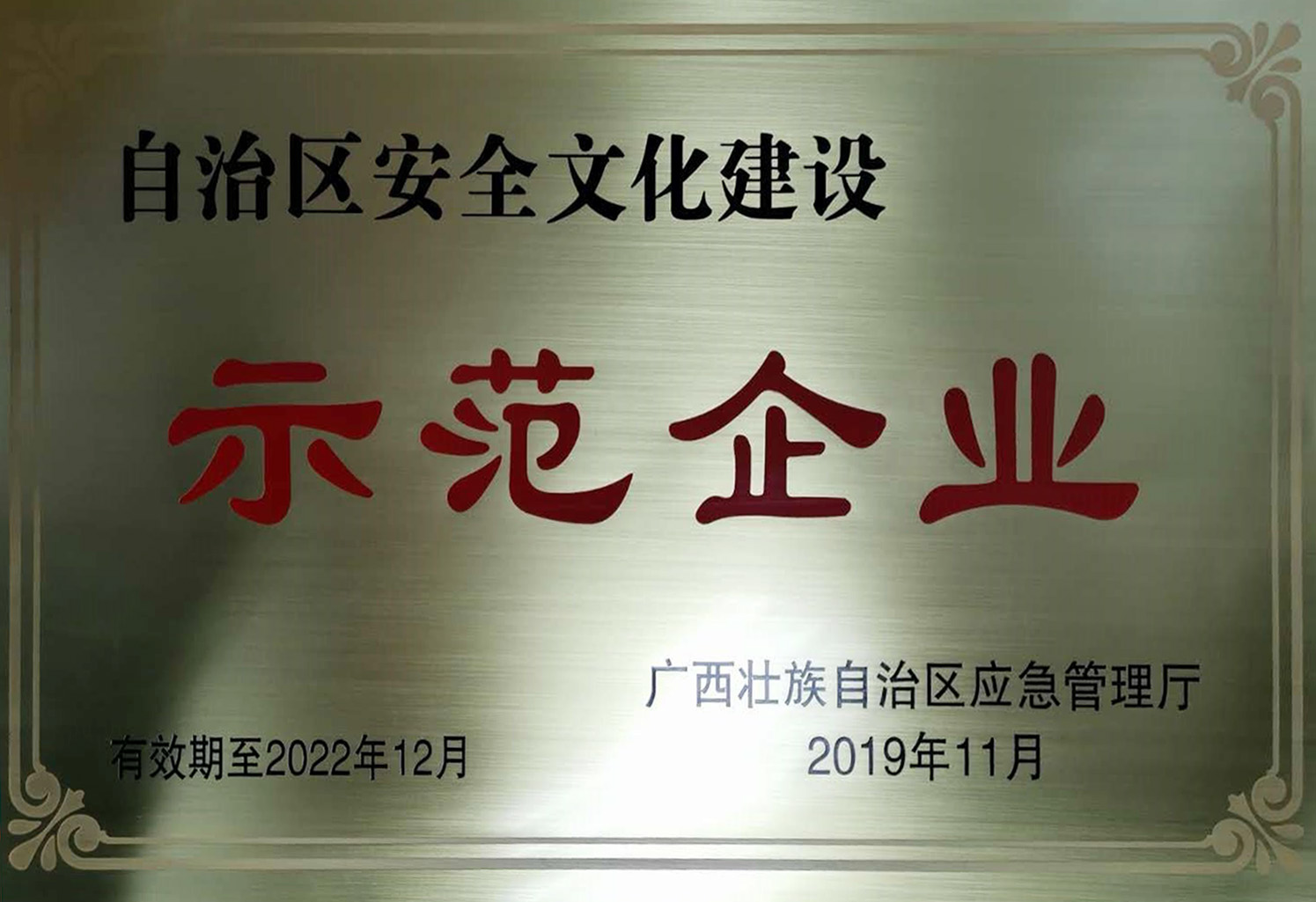 2019年評為自治區(qū)安全文化建設(shè)示范企業(yè)